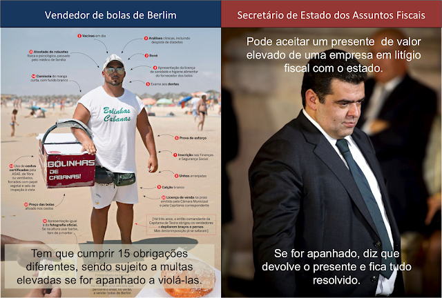 "O mesmo secretário de estado que ordenou a fiscalização dos vendedores de bolas de berlim parece que aceitou um presente de valor elevado de uma empresa com a qual o estado tem uma disputa fiscal. Esperemos que seja condenado a pagar, no mínimo, a mesma multa que o vendedor de bolas de Berlim."