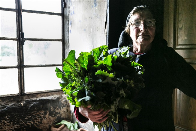| As três irmãs, Maria, Conceição e Ana, com a vizinha Idalina, que costuma levar couves |